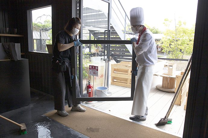 閉鎖していた2年分の想いを込めて、丁寧に掃除していきます。