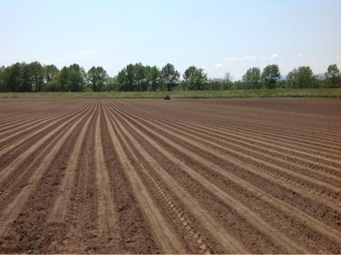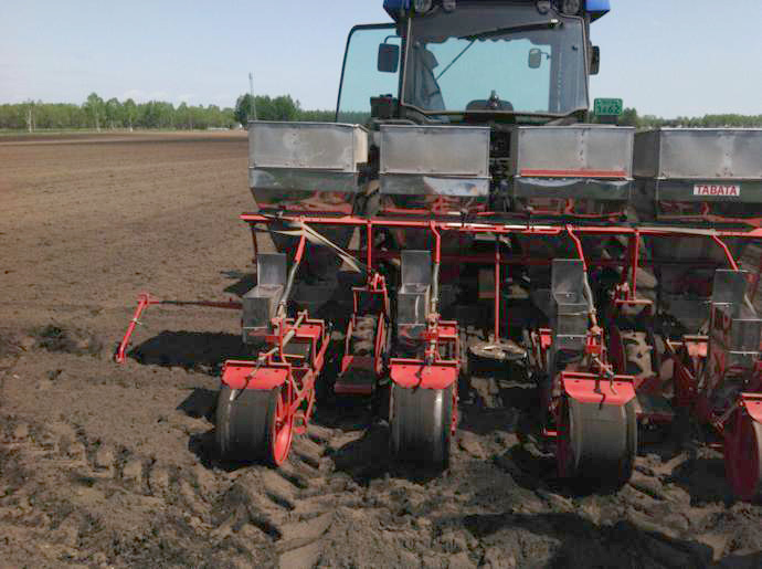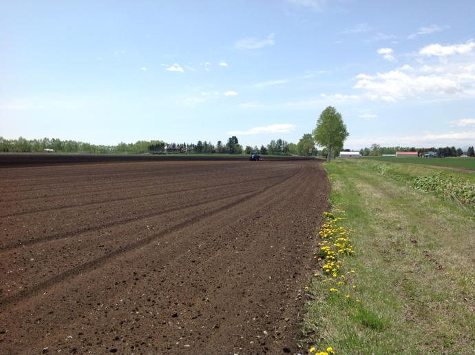 さすが北海道!ほんとに広大な畑です。大きい播種機が向こうの方までいくと点にしか見えません。