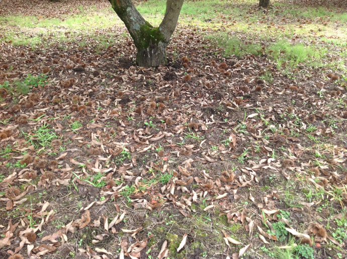 熟した栗は自ら落ちてきてくれます。