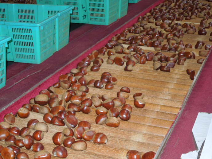 収穫した栗は選果場に運ばれます。