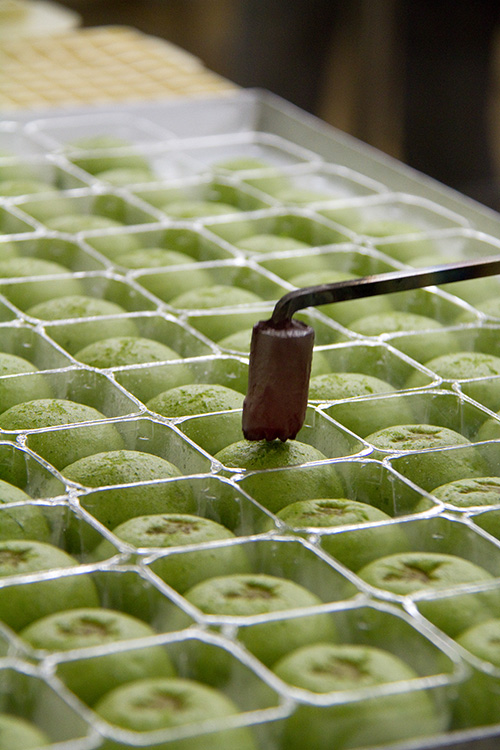 饅頭工房では、たねや饅頭よもぎを製造しています。