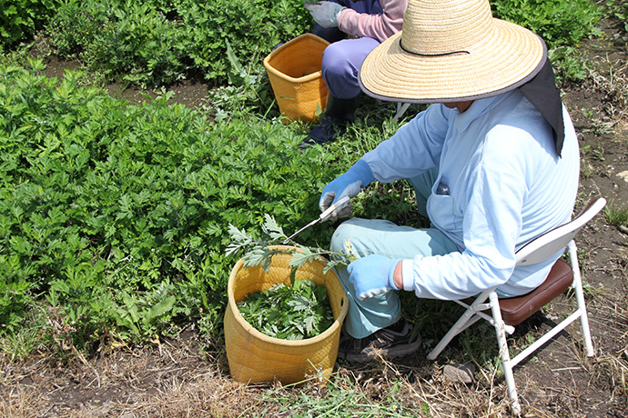 収穫したよもぎは、その日のうちに永源寺農園で加工していきます。