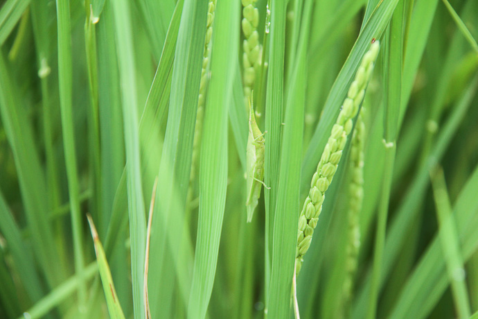 青々とした穂が天に向かって勢いよく伸びています。
