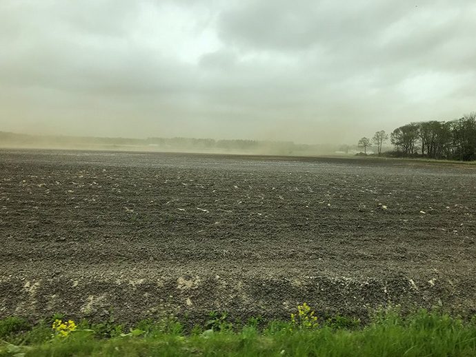 「4月末から雨が降っていない。こんな事今までなく、風も強いので土埃がひどい」と山田さん。