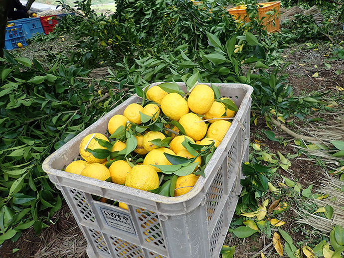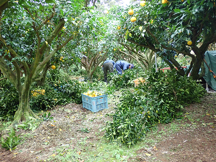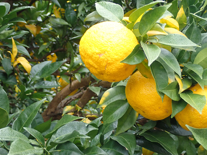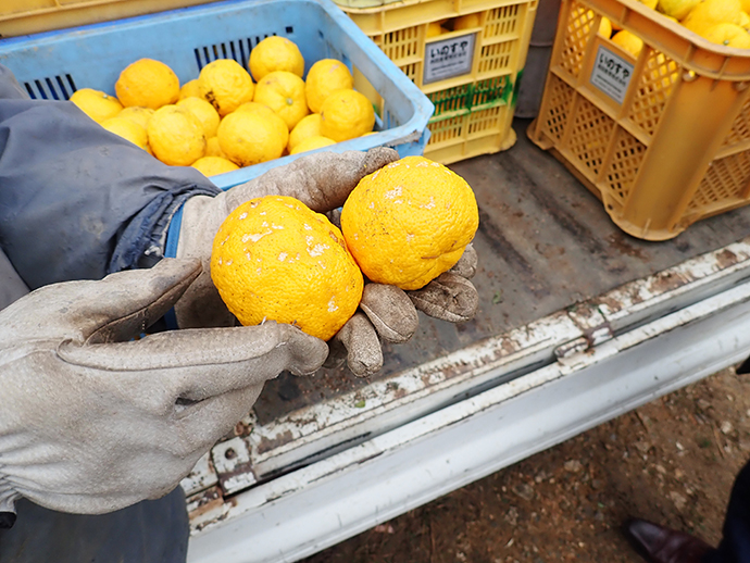 「枝を更新しないと木が古くなるにつれ、実はなっても汚い柚子になる」と、柚子農家の宮本さん。