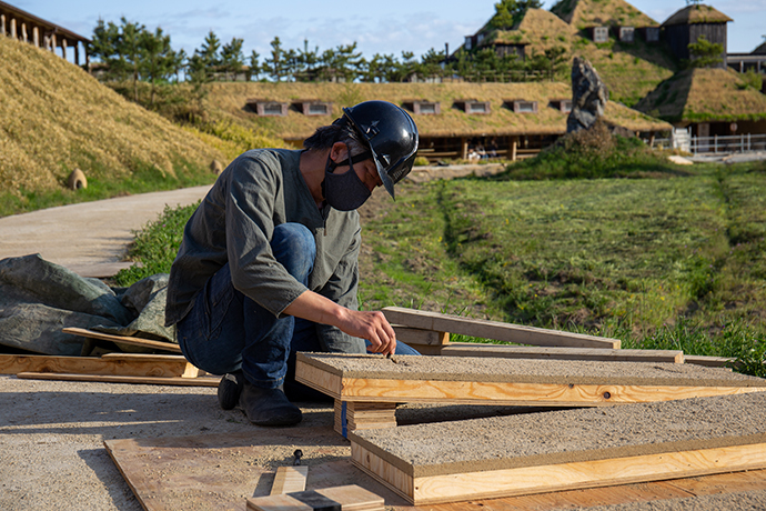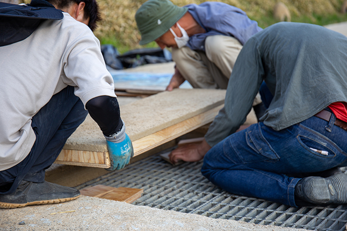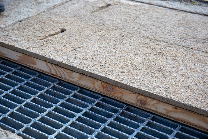 この排水枡を隠す「蓋」も、ラ コリーナのランドスケープ(景観)担当の重野さん監修のもと、キャンディーファームスタッフが手作りしたものです。