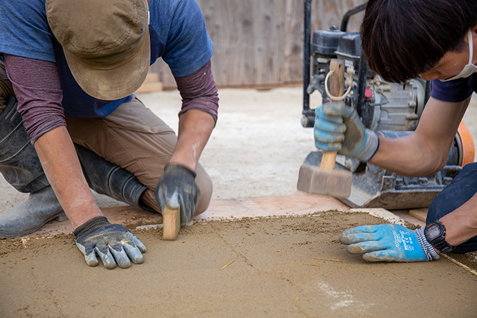 上を歩いたときにグラグラしないよう、安定する高さを探します。