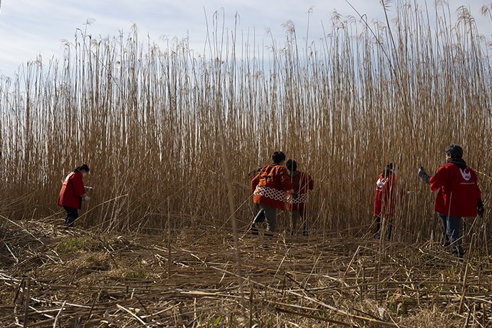 今年のラ コリーナのたいまつ作りは年明けのヨシ刈りから始まりました。