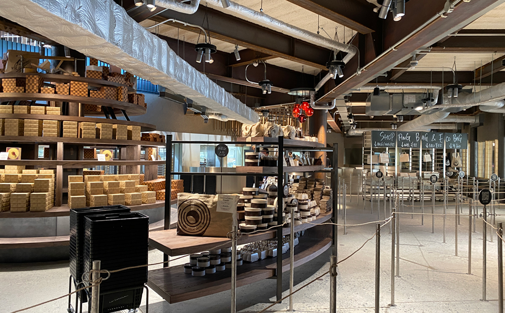 クラブハリエの新店舗バームファクトリーでは、バームクーヘンをよりお楽しみいただけるよう様々な工夫を凝らしています。