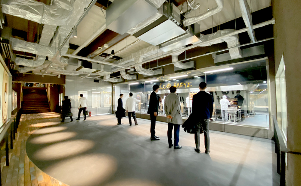 お店の奥にある見学通路は、実際にバームクーヘンの工場に入ったような感覚で見ていただけるんじゃないかと思います。ぜひ楽しんでいただけたら嬉しいです」