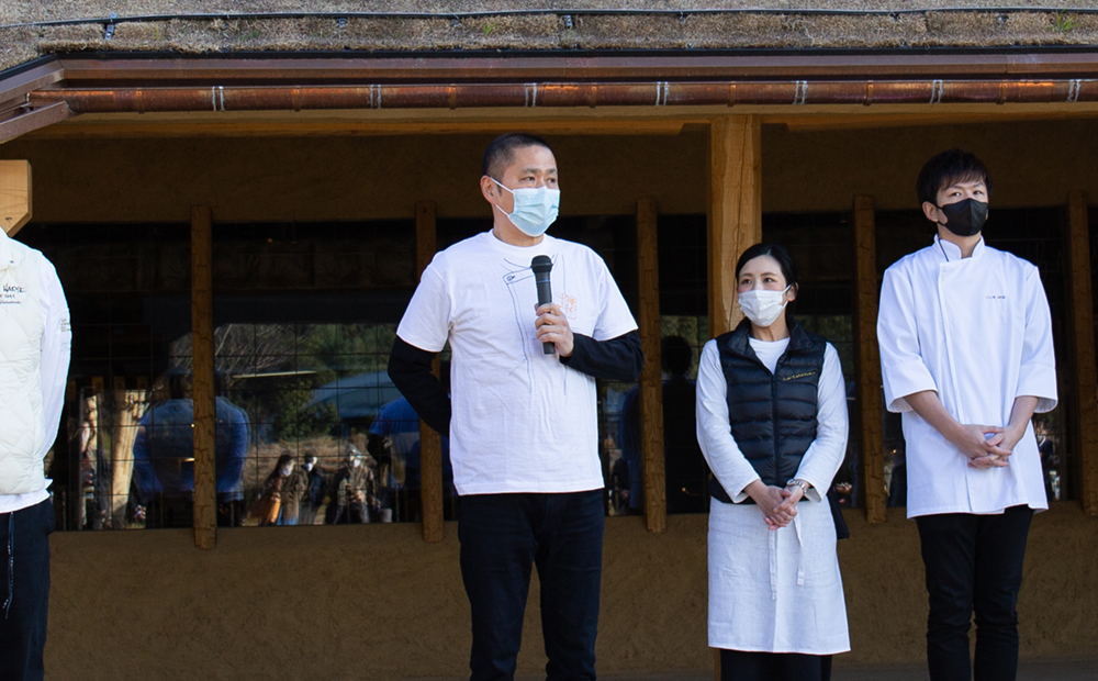 オープニングセレモニーではクラブハリエ代表取締役社長 山本隆夫、たねやグループCEO山本昌仁がご挨拶。