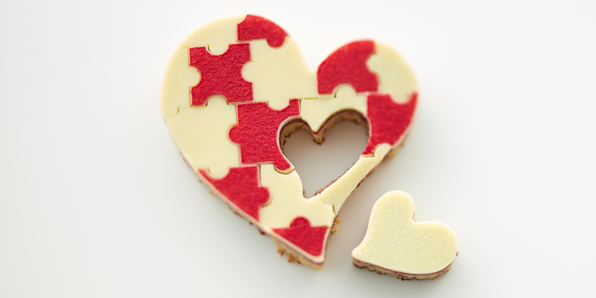 隣に添えた小さなハートは、お客さまの手でパズルを完成させてほしいというシェフの遊び心です。