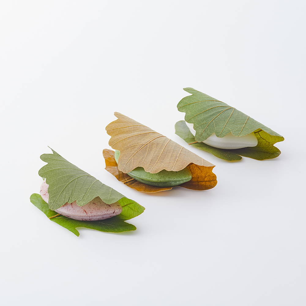 柏餅はこし餡、粒餡、みそ餡と三種類あり、餡によって生地も異なります。2023年からはみそ餡をよもぎ餅で包み、より香りをお楽しみいただけるようになりました。
