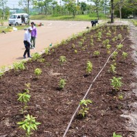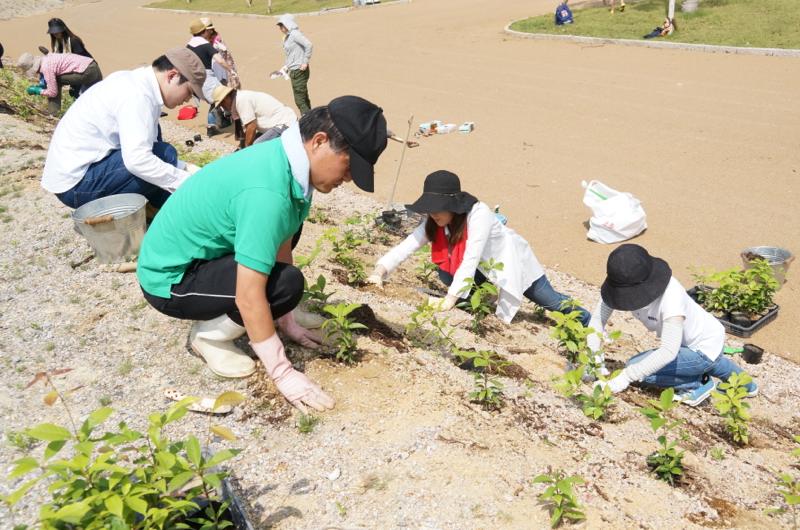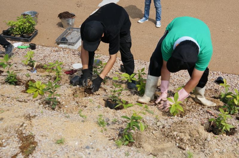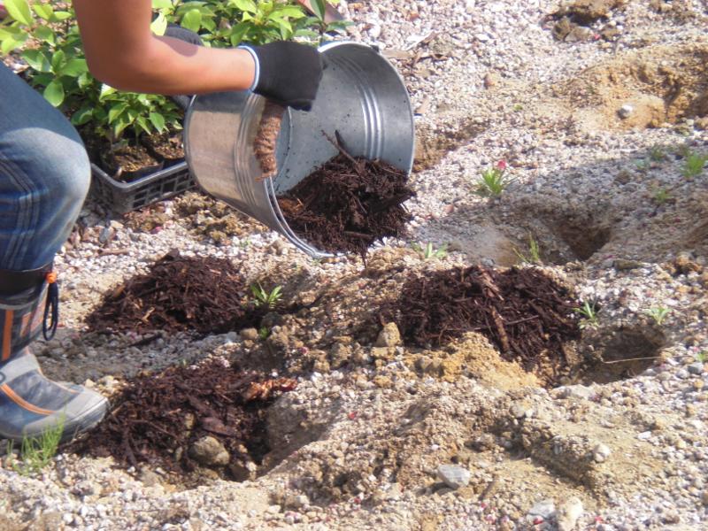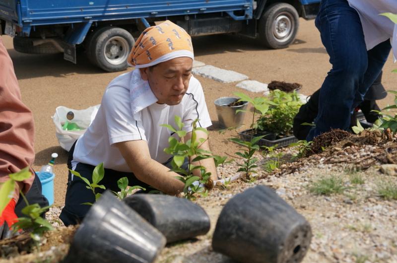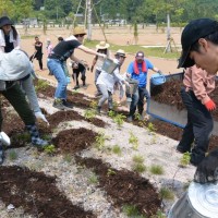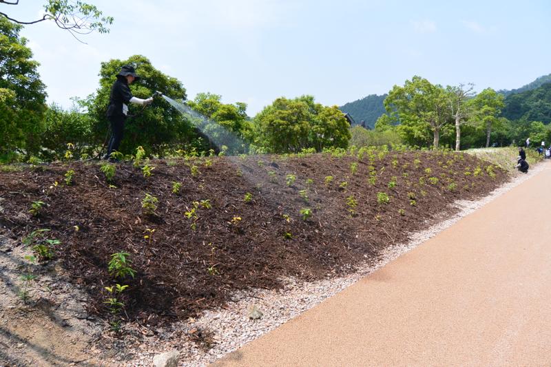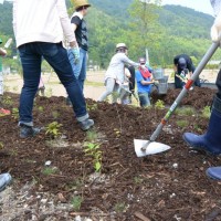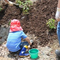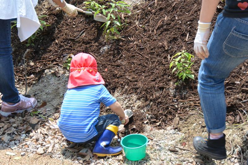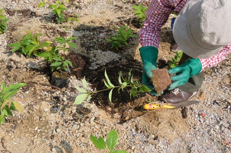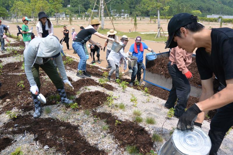 今年初のどんぐりプロジェクト。376本の苗木を植えました。前回植えた箇所には、保湿と栄養を与えるバーク敷きも。バケツリレーの楽しい掛け声で、みんなのパワーが一つになりました。