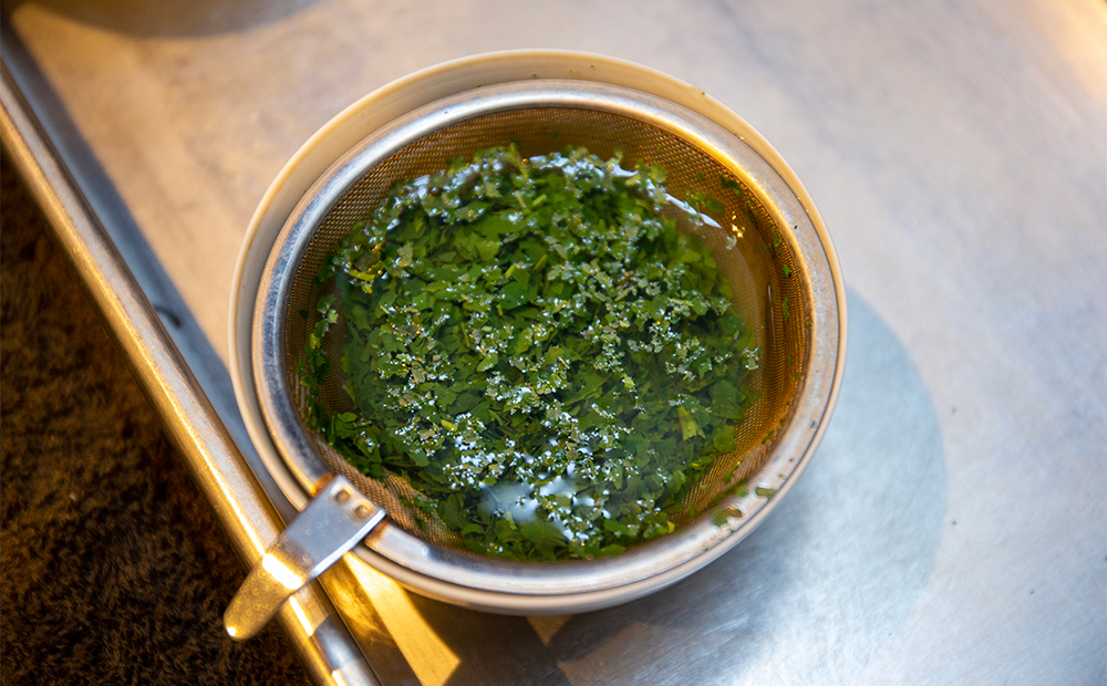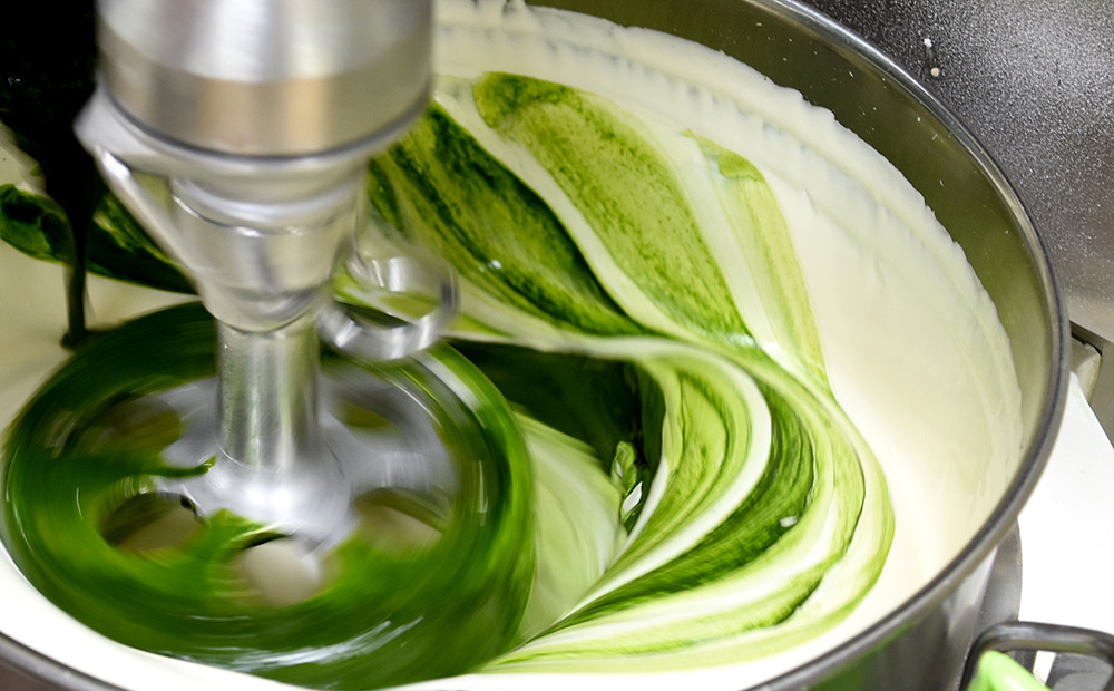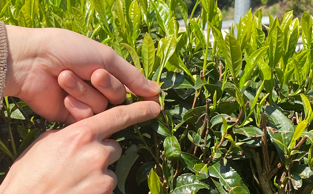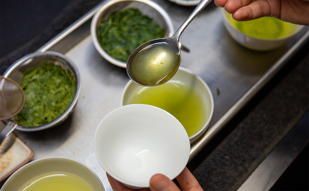 茶畑に足を運び、抹茶について深く学ぶとともに、繊細な味わいをお菓子でどう表現するか様々な工夫を凝らしました。抹茶は火入れ具合で味や風味が異なるため、数々の抹茶で試作を繰り返し、時間をかけて何種類もの中から最適な品種を選び抜きました。