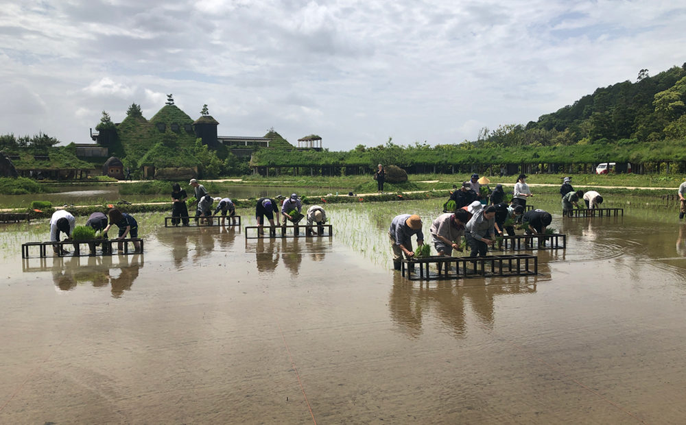 ラ コリーナの中央には田んぼがあり、毎年スタッフが田植えから稲刈りまで携わっています。