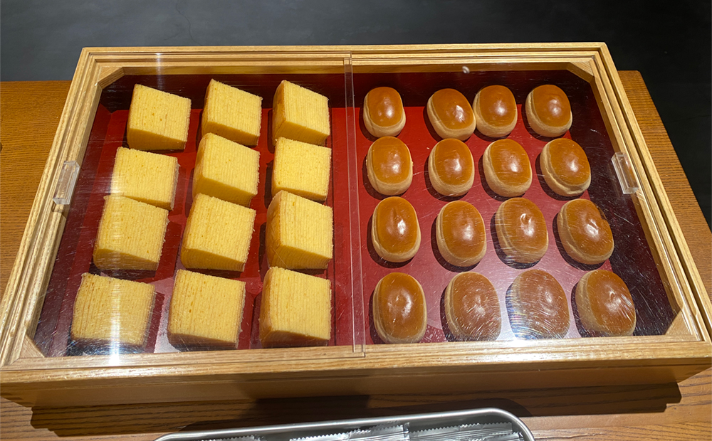 生地がへこんだり焼きムラがあるなどの理由で販売できないものや、試作段階のお菓子が並びます。
