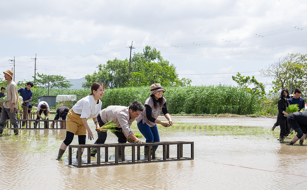 この日の田植えは、今年から始まるリジェネラティブ(環境再生型)農業『懐かしい未来の始まりプロジェクト』の第一歩。