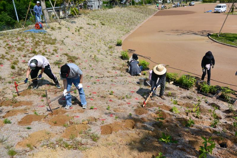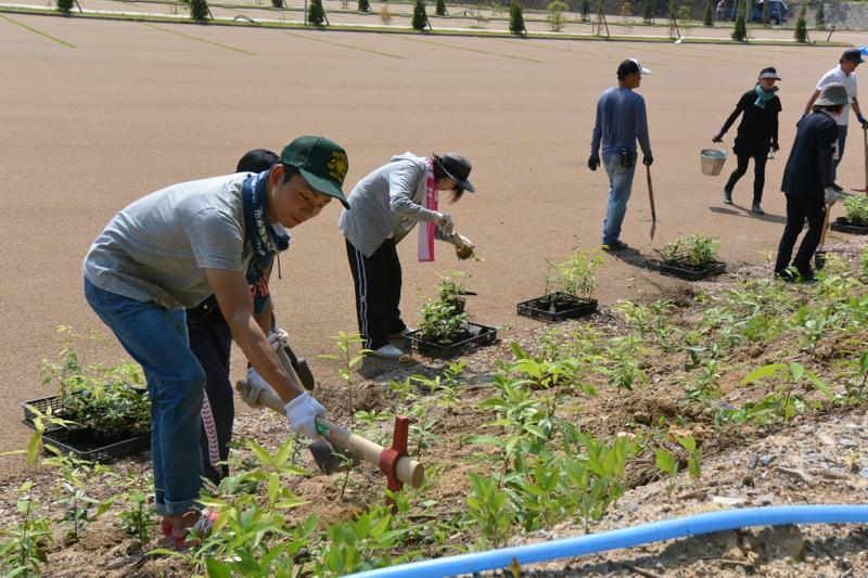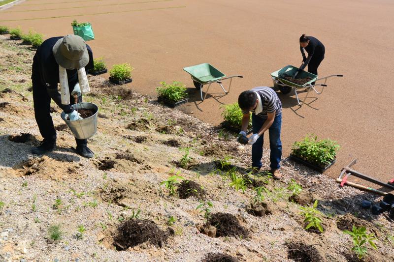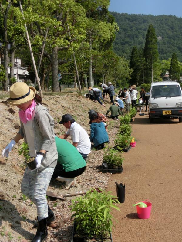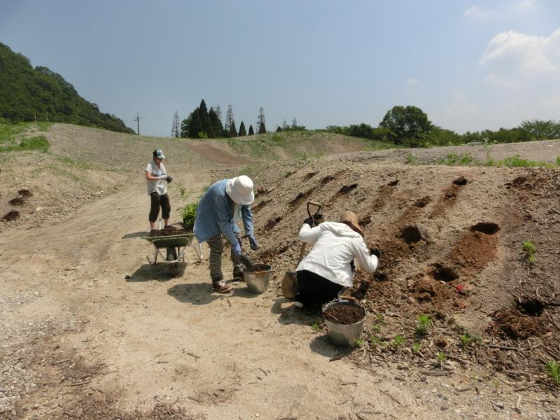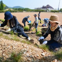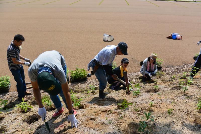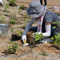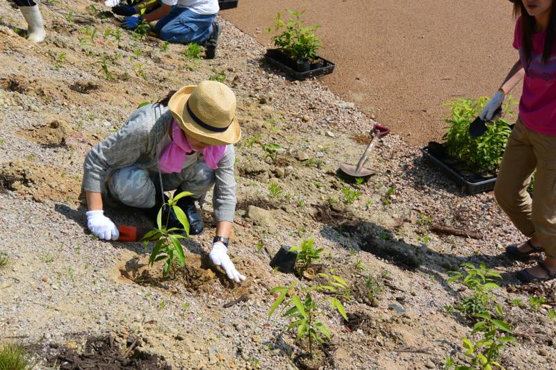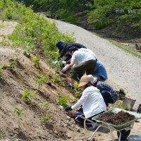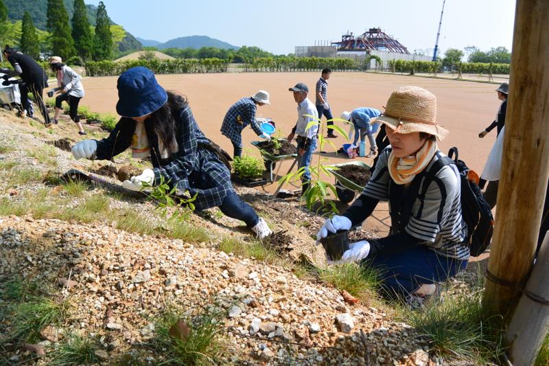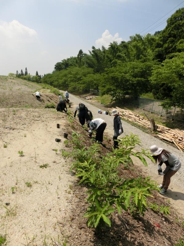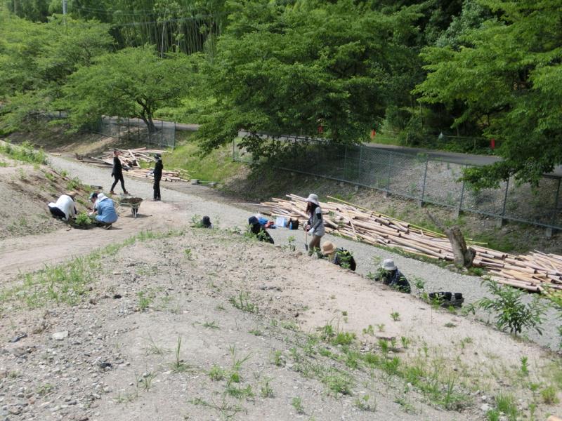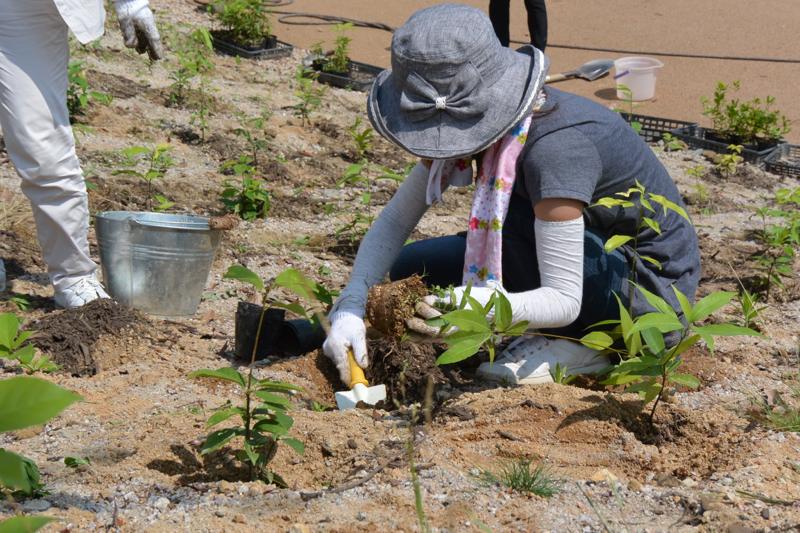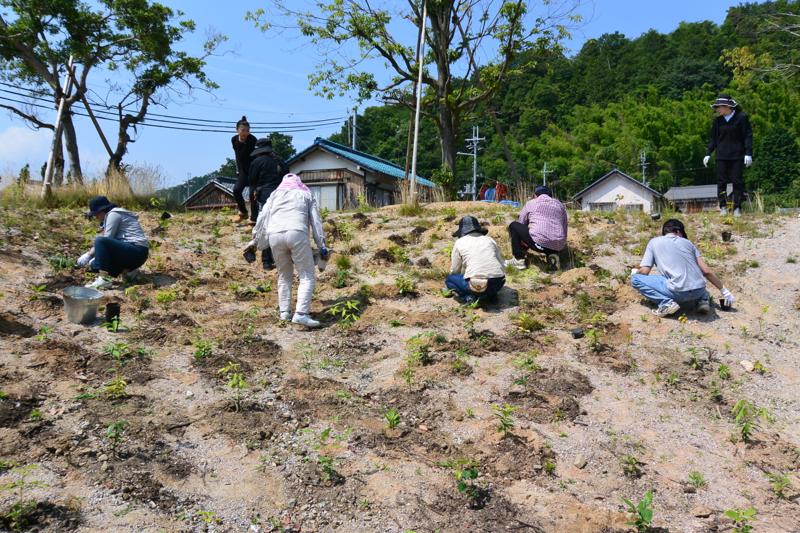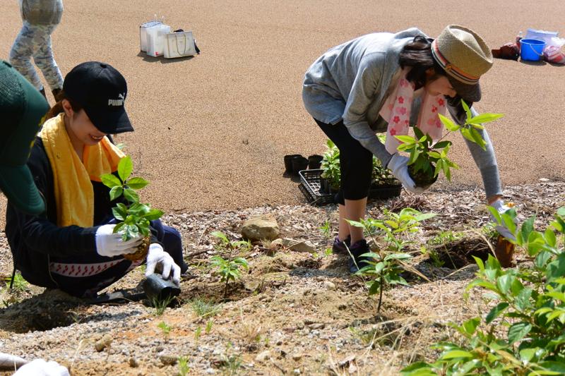 「わたしたちも!」と、大阪・兵庫などからも参加のあった今年3回目のどんぐりプロジェクト。30数名で1,087本の苗木を植えました。回を重ねるごとに、どんどん植える本数も増えてきています。苗植え初年度の場所をお手入れするなど、年月の重なりも感じますね。