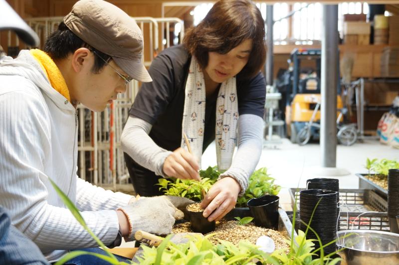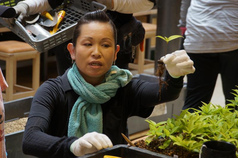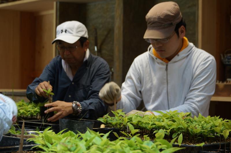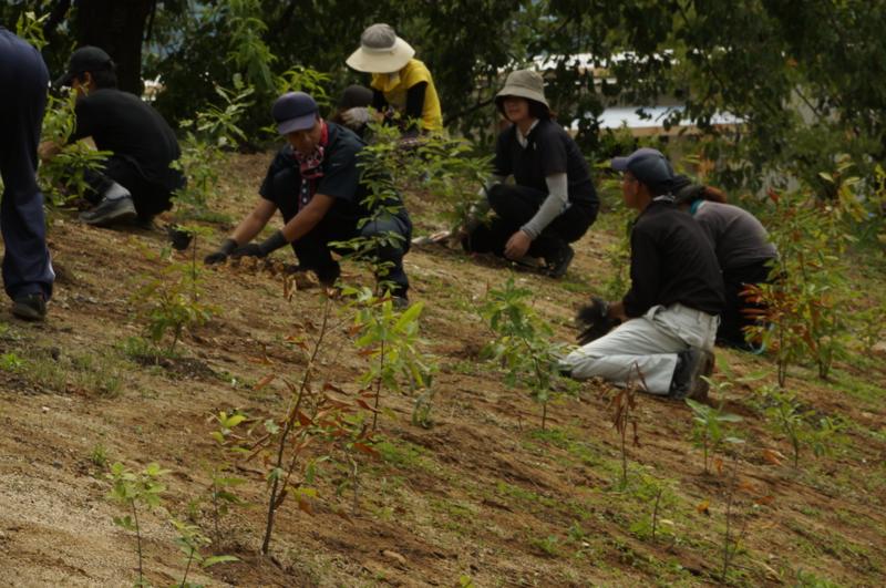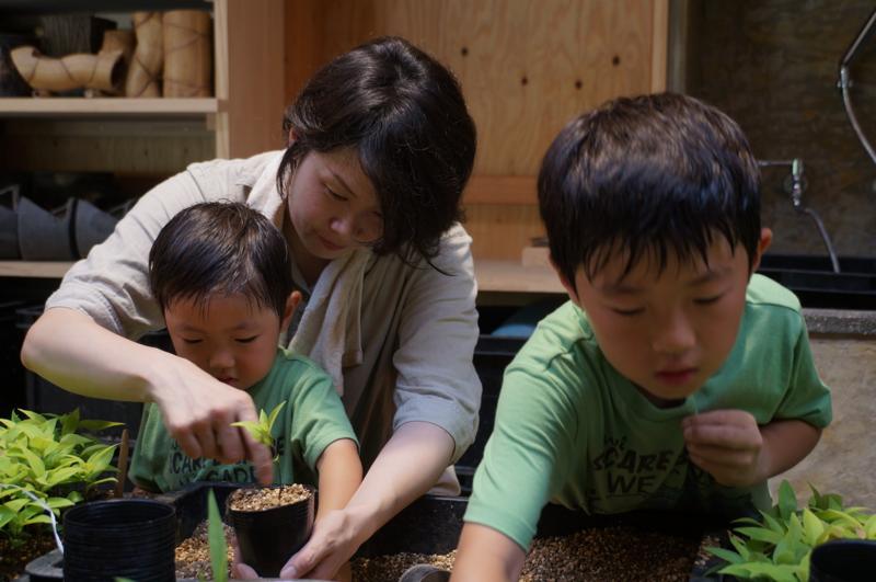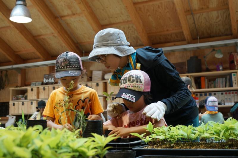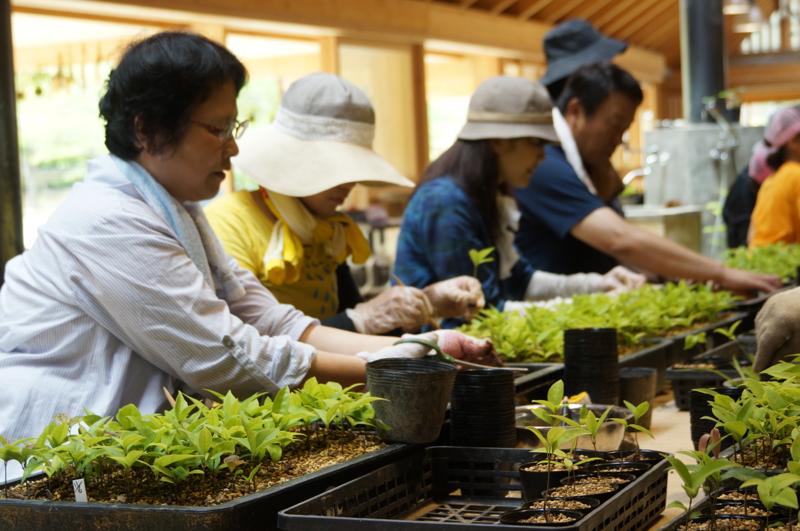 親子での参加も嬉しい、盛りだくさんの今回。約30名で楽しいひと時となりました。 <草引き>: ポイントは、田んぼの畦にあるような雑草は残すこと。一つひとつの雑草にも名前があることを知ると、豊かな自然の世界が広がります。 <苗植え>: 今回はクヌギ165本、コナラ130本を植えました。手際もグッド。 <ポット上げ>: 発芽したどんぐりを一つひとつポットに移し替える作業。昨年の秋に皆でひろったどんぐりが、春に芽をだしたものです。大切に大切に、小さな命を育てます。 子どもたちが活き活きと楽しむ姿に、ラ・コリーナ近江八幡の未来が垣間見えました。