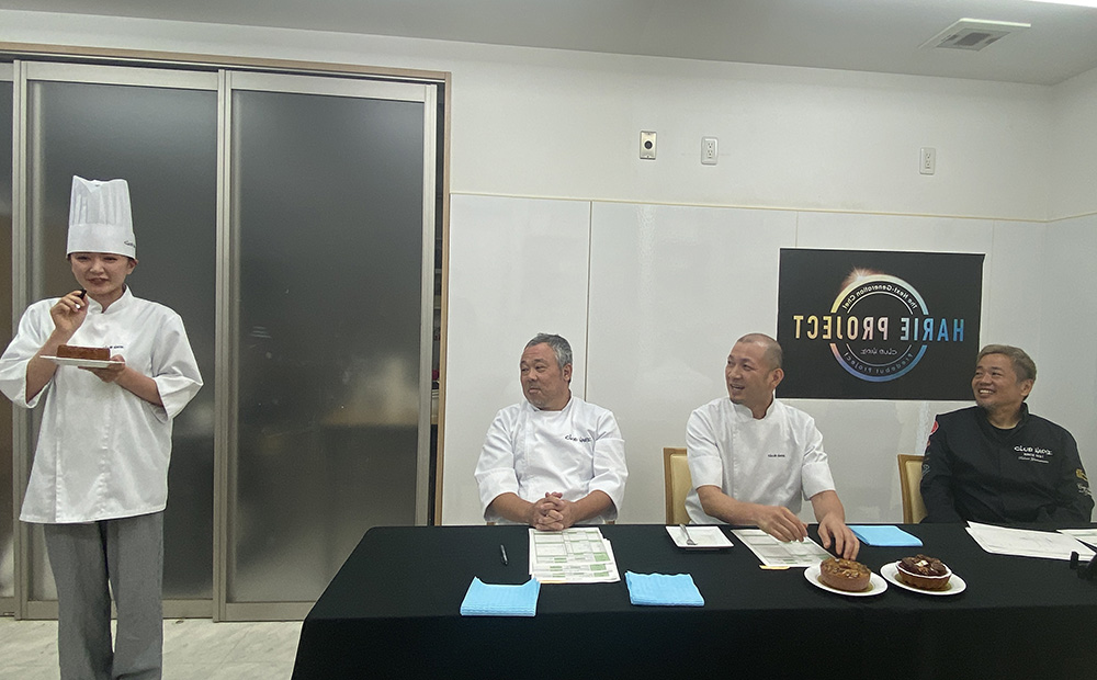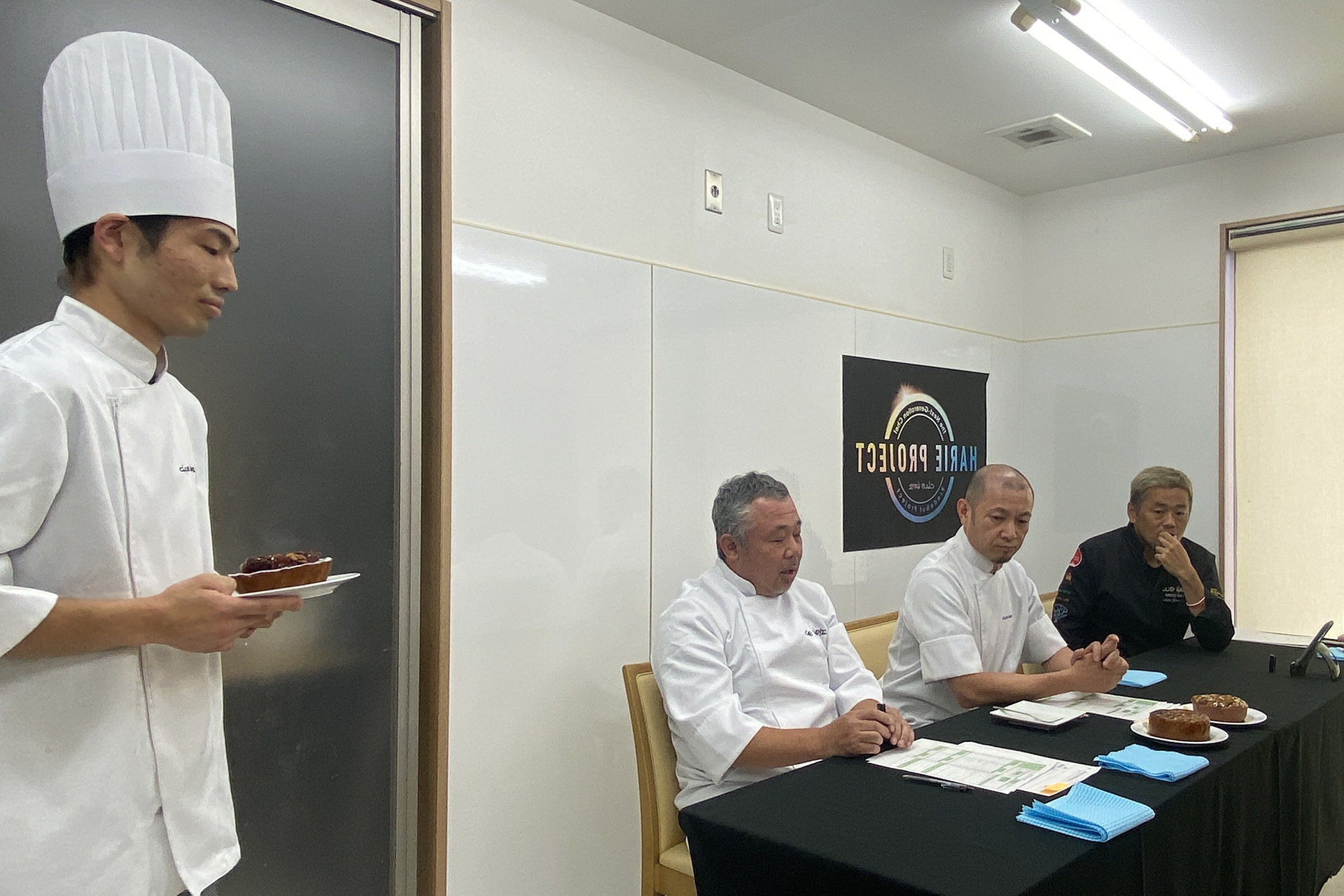 3作品の中から1位を決める最終審査の審査員は、クラブハリエ グランシェフ 山本、セクターシェフ 妹尾、林が務めました。
