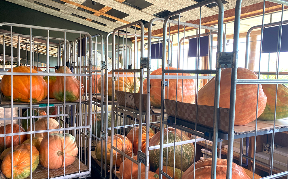 大きなかぼちゃがたくさん並んでいる姿はとても壮観です。