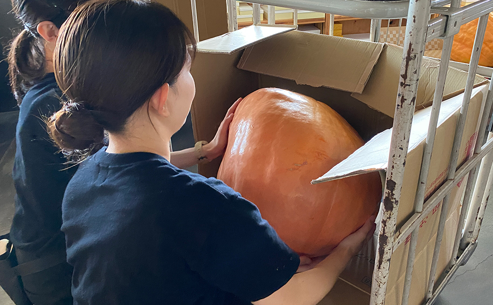 きれいになったかぼちゃは傷つかないように丁寧に梱包し、各店舗へ送ります。