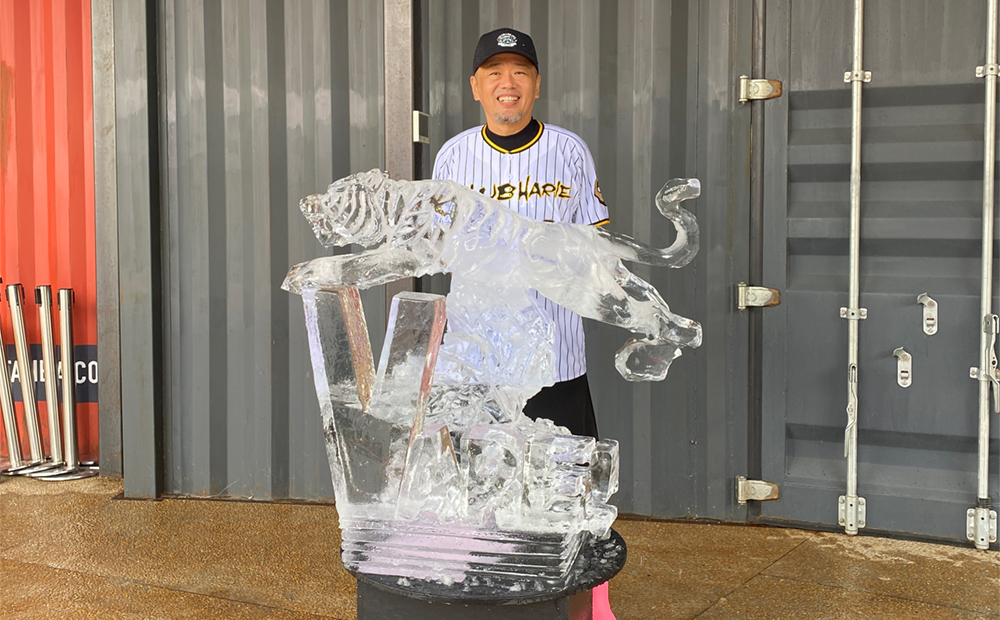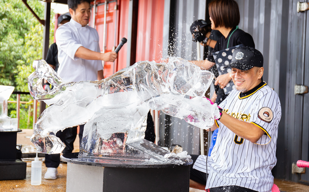 イベントはクラブハリエ グランシェフ 山本隆夫による氷彫刻ライブからスタート。