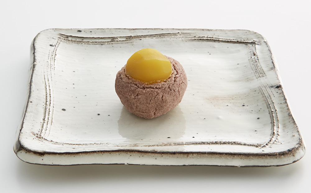 この十三夜にあわせてお届けする歳時菓「栗名月」は、黄味餡を包んだ時雨生地に蜜漬けの栗をのせたもの。口どけのよい生地と栗の食感をお楽しみいただける一品です。2023年の十三夜は10月27日。店舗では1日限りのお届けとなります。