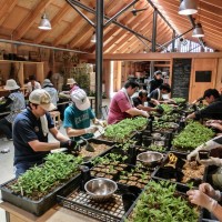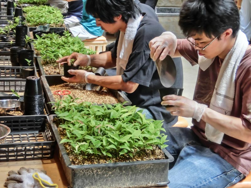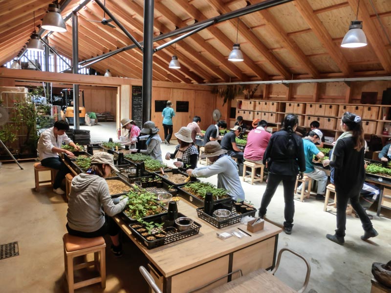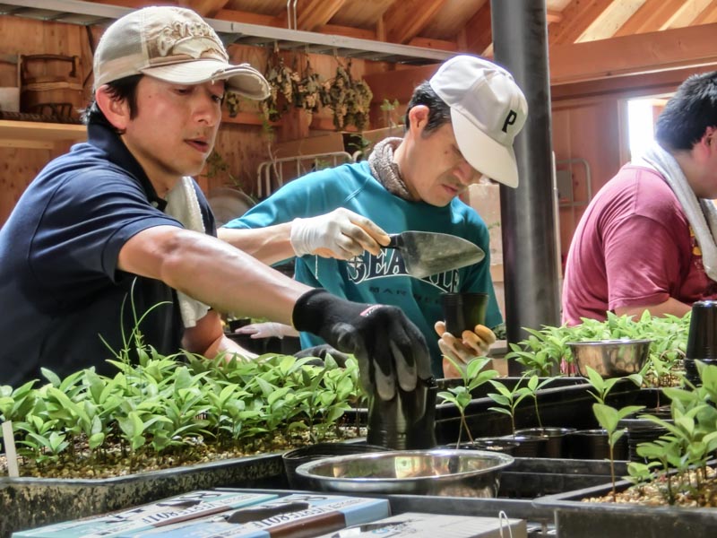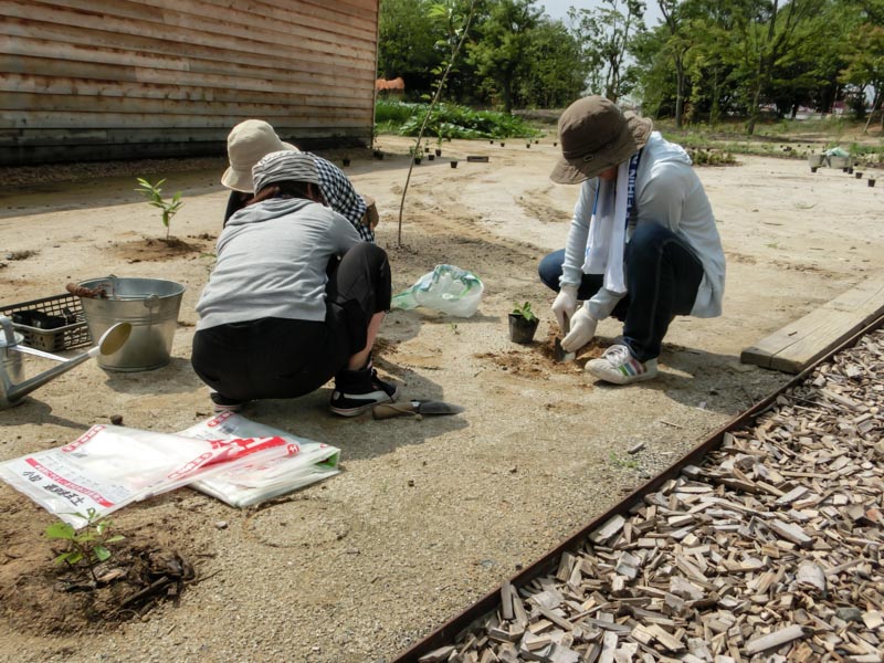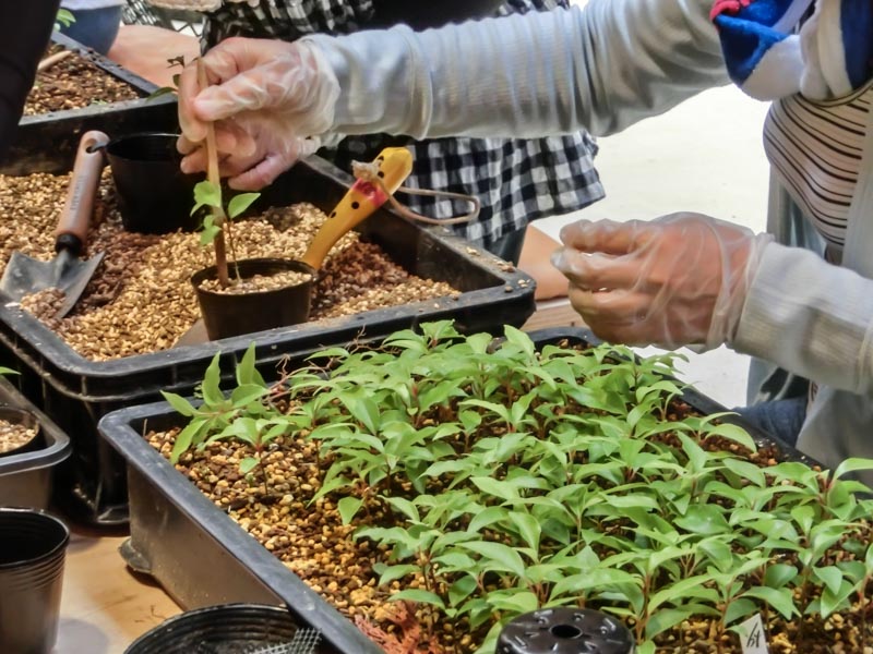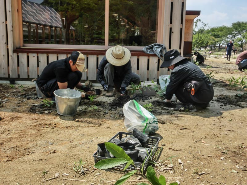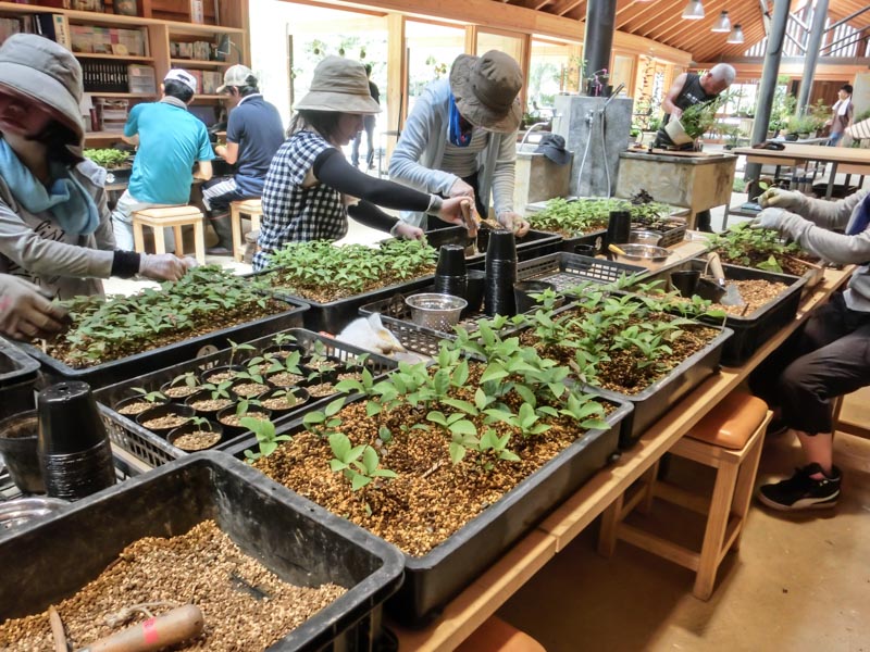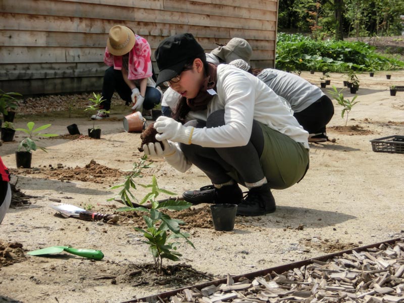 約20名の参加で行われた、春夏ラストのどんぐりプロジェクト。たねや農藝の前に、クヌギ128本・コナラ134本を植栽しました。そして、約850個のポット上げ(シロダモ30・アラカシ69・スダジイ80・クスノキ94・シラカシ576)!今年も成長が楽しみです。