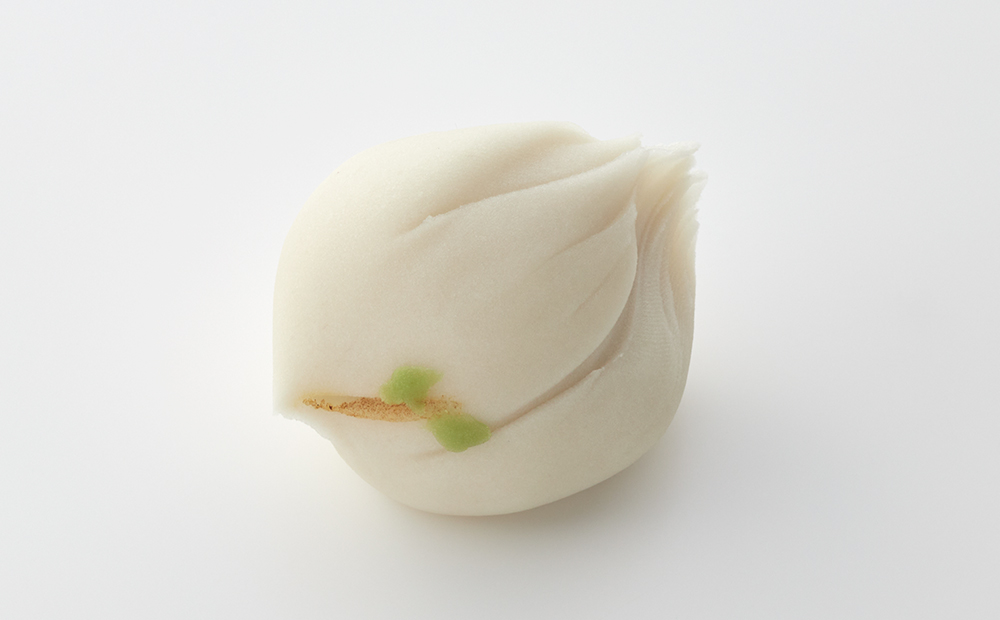 令和六年の勅題「和」にちなみ、福白こし餡を包んだ薯蕷煉切(じょうよねりきり)で鳥をかたどりました。平和への願いをこめた上生菓子です。