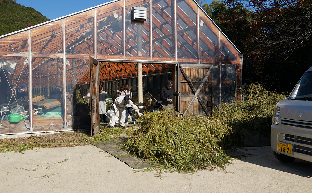 枝を剪定したのち、約1万本以上の柳の枝がキャンディーファームに運び込まれました。