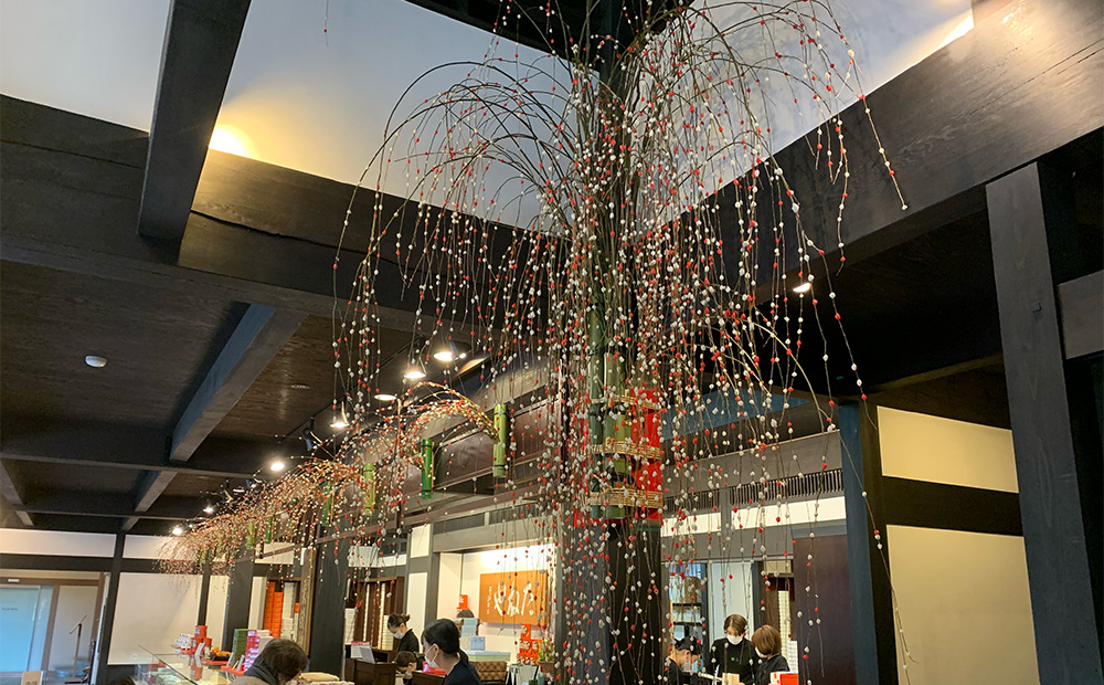 餅花は各店舗に送られスタッフにより飾りつけられます。