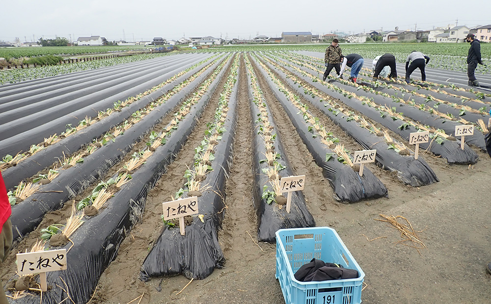 旨味家ファームさんのこだわりは、独自のブレンド肥料で丁寧に育てて、夏の高温や病害虫に負けない葉をつくることと、しっかり太陽を浴びてできた栄養で、サツマイモをじっくり時間をかけて育てることです。