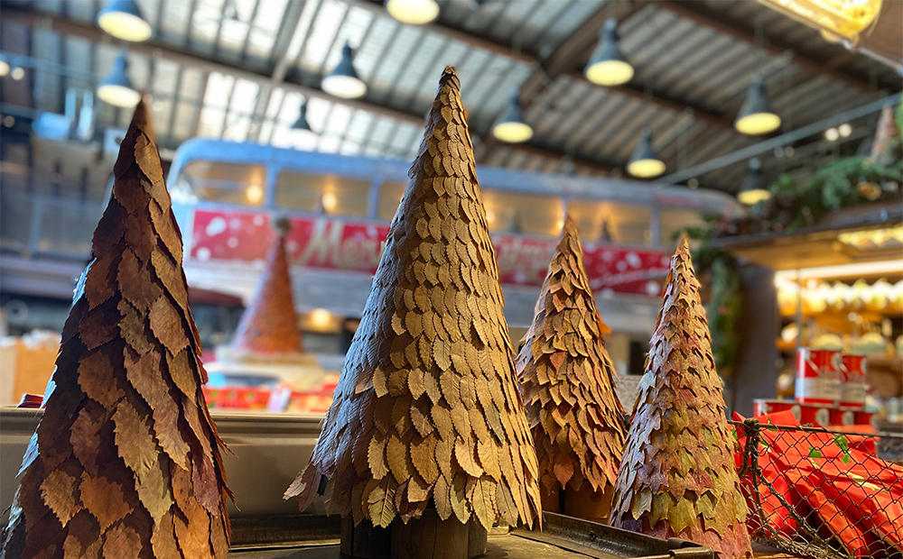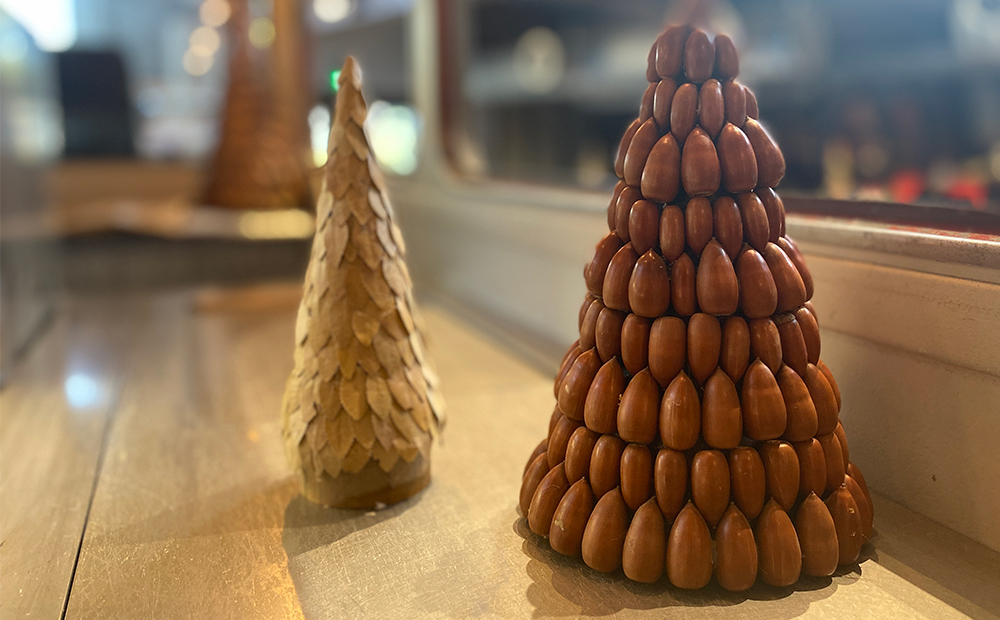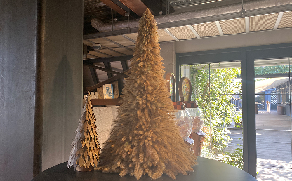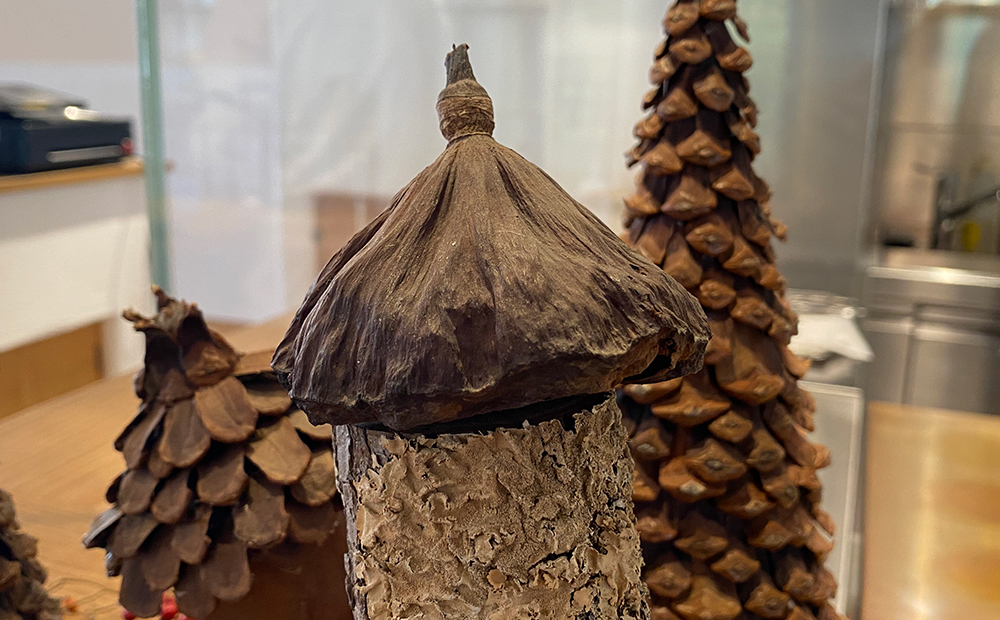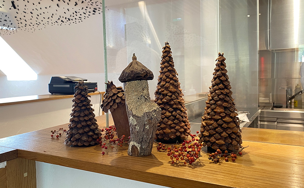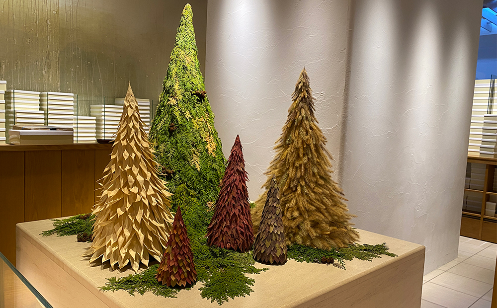 華やかな飾りはなくとも、その存在感はしっかり季節感と雰囲気を引き出してくれます。今年ラ コリーナでは洋菓子売り場に限らず、和菓子売り場でもたくさんの葉っぱツリーやリースの展示をご覧いただけます。その一部をご紹介します。