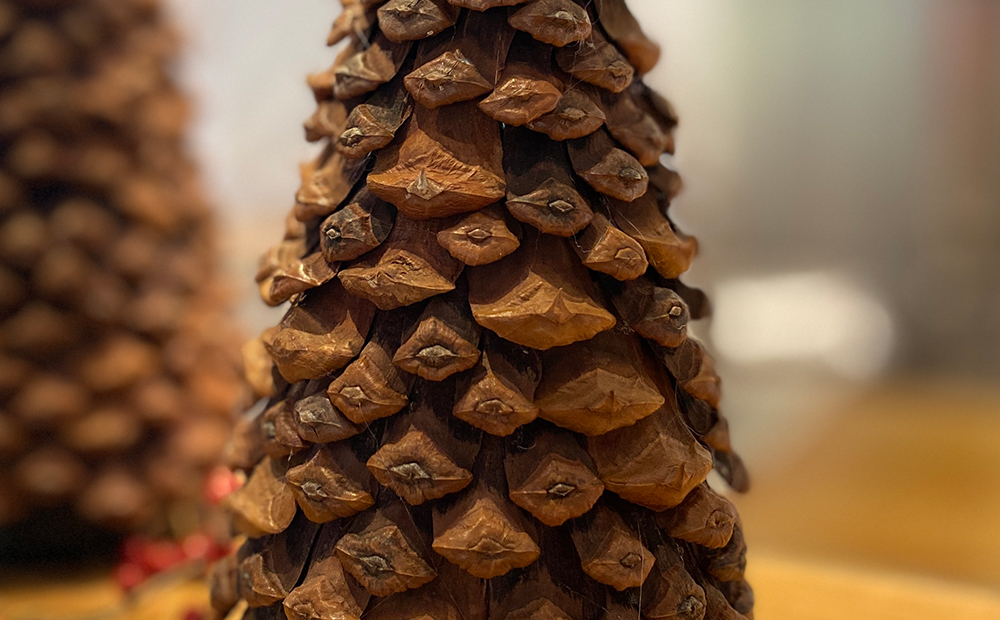 松ぼっくりは一枚ずつ丁寧にはがし、立体的なツリーに変身です!