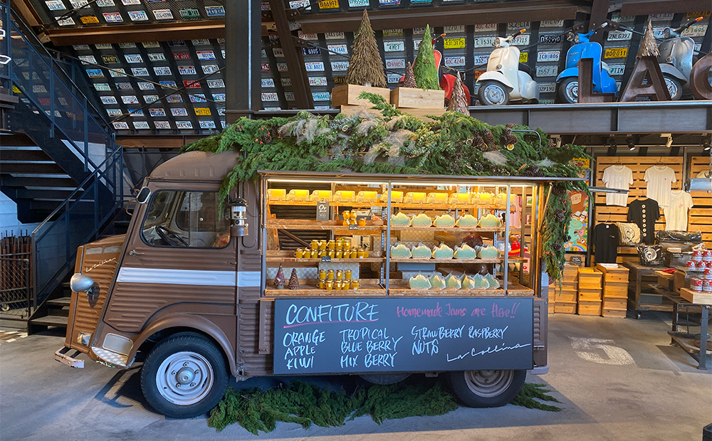 シトロエン・Hトラックもたくさんの葉っぱツリーを乗せ、車体ごとクリスマス仕様に!