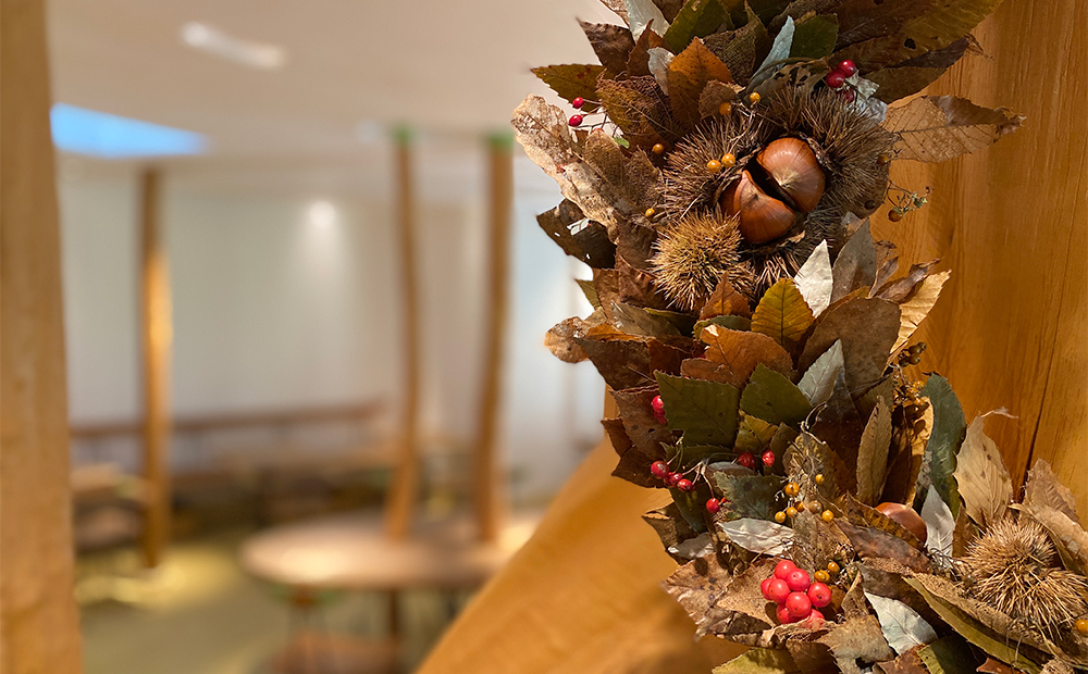 栗百本だけに、“いが栗”がリースの素材になっていてとても素敵です!