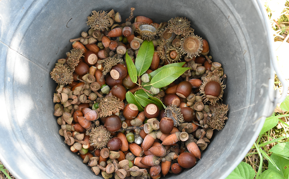 「どんぐりプロジェクト」という名前の通り、どんぐりをひろい集め、ポットに植えて苗木にし、ラ コリーナ近江八幡の敷地内に植樹します。