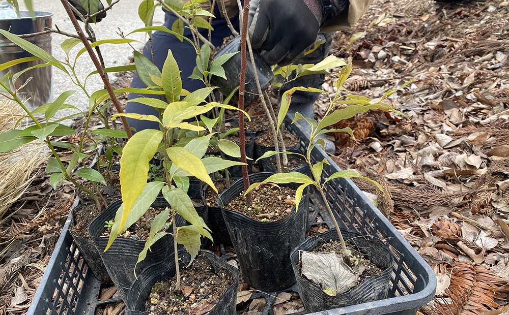 また、どんぐり以外にもラ コリーナ近江八幡の後ろにある八幡山、そこにはどのような植物が植わっているのだろうと、植生調査をし、八幡山につながる森を作るために多様な植物を植えています。