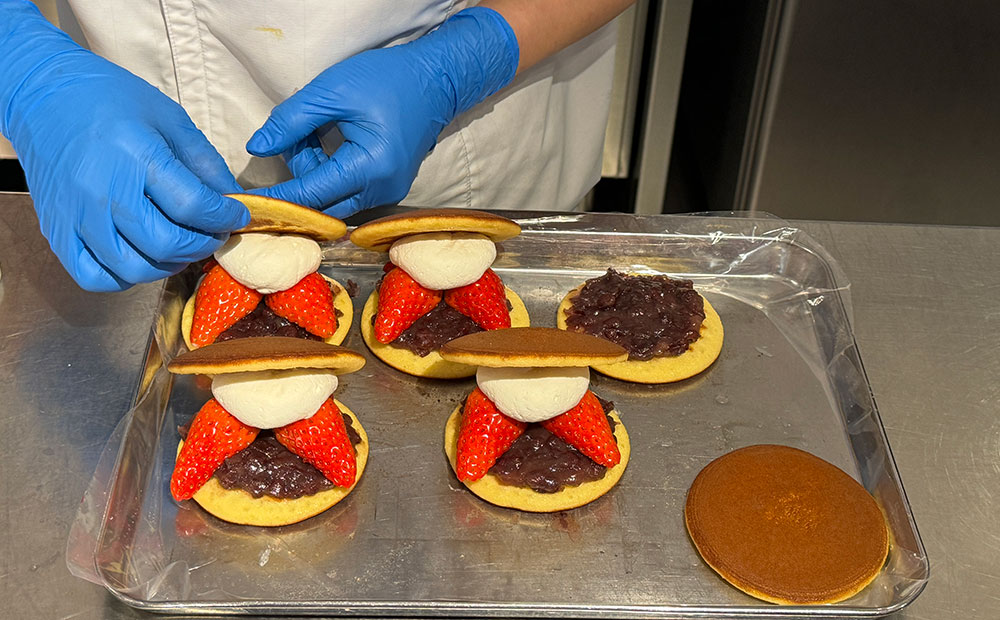 生どらは2015年1月 ラ コリーナ近江八幡のオープンと同時にラ コリーナ限定の新商品として誕生し、今年で10年目。季節によってさまざまな素材を組み合わせ、1年通して楽しめる商品のためスタッフにも大人気です!特にいちごの季節は短いので、何度も足を運んでしまいます。