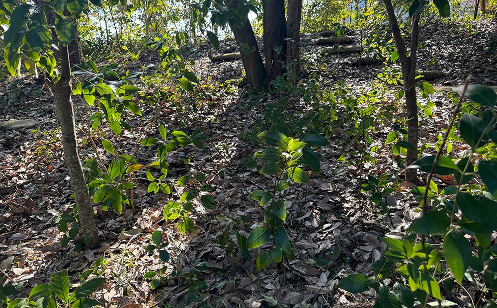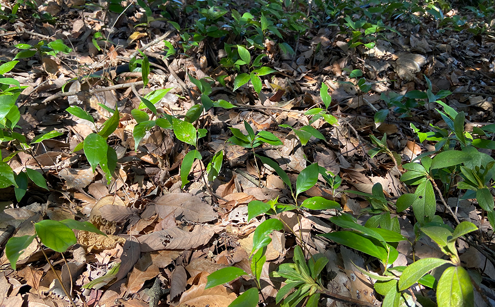 ▲ 地面から新しい木の苗が出てきているのもかわいらしいです。
