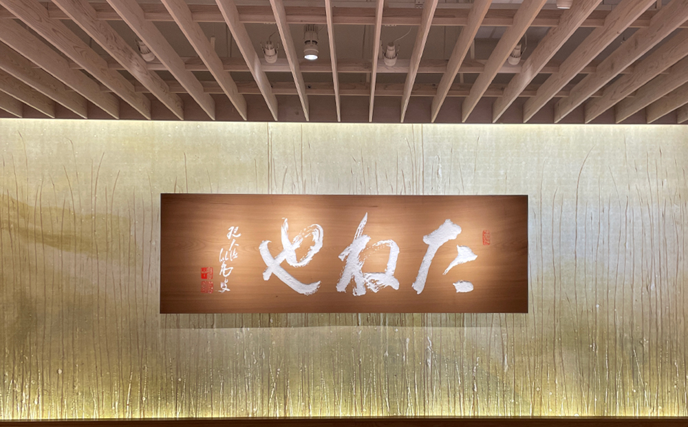 桂の木は材質がやわらかく、仕上がりもきれいなので、たねやでは全店桂の一枚板で看板を設ています。
