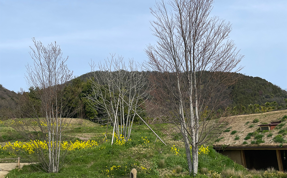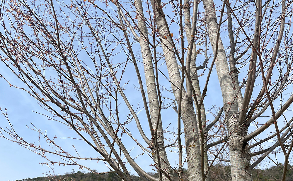 また、ラ コリーナの敷地内では立派な桂をご覧いただくこともできます。こちらはまだ新芽の状態なので、これから青々と可愛いハート型の葉をたっぷりとまとい、秋には紅葉もお楽しみいただけます。