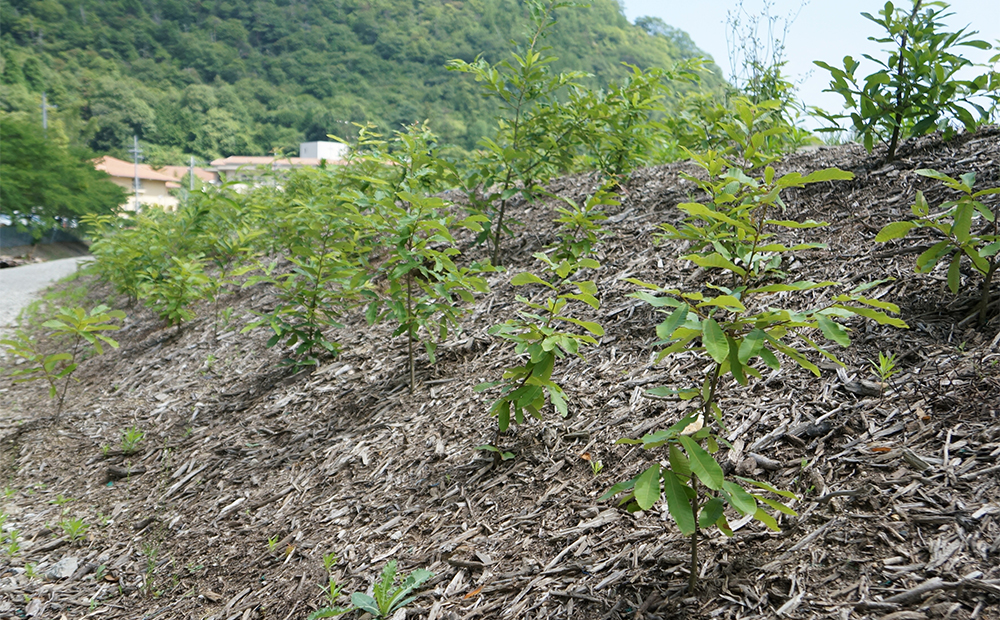 ラ コリーナの裏にある八幡山で植生調査を行い、約100種の木をポットで育てラ コリーナの敷地内に植樹しています。