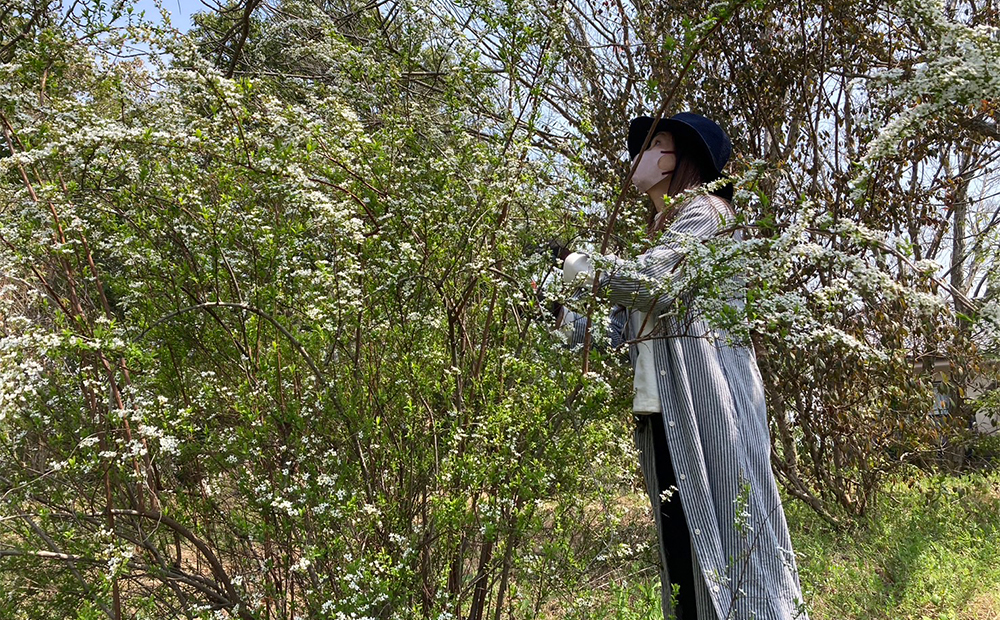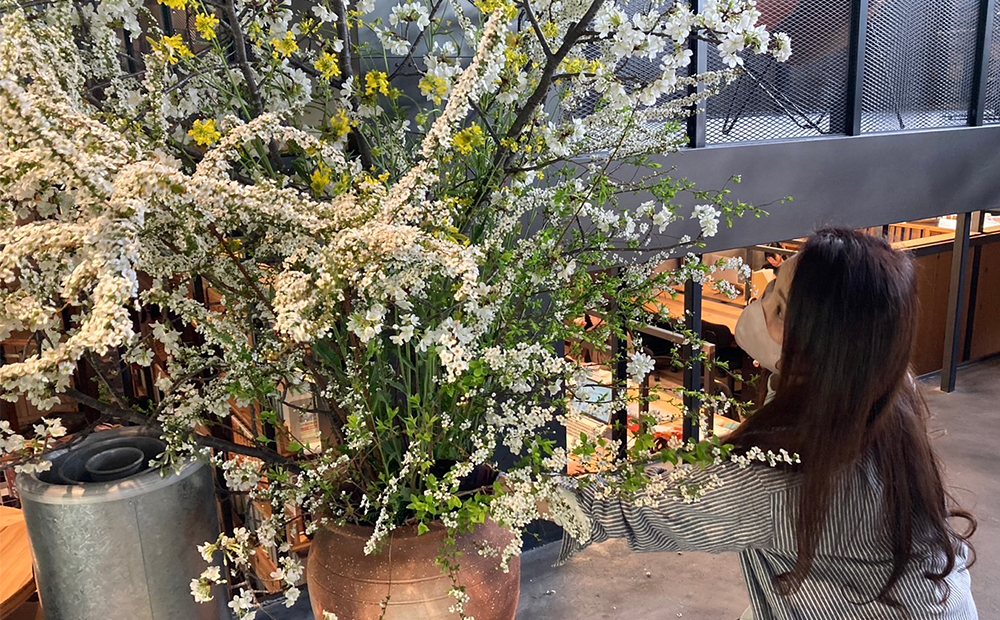 大きな壺に生けられたお花は、どれもラ コリーナ近江八幡で生き生きと育っているもの。やわらかな色と香りで春を感じさせてくれています。