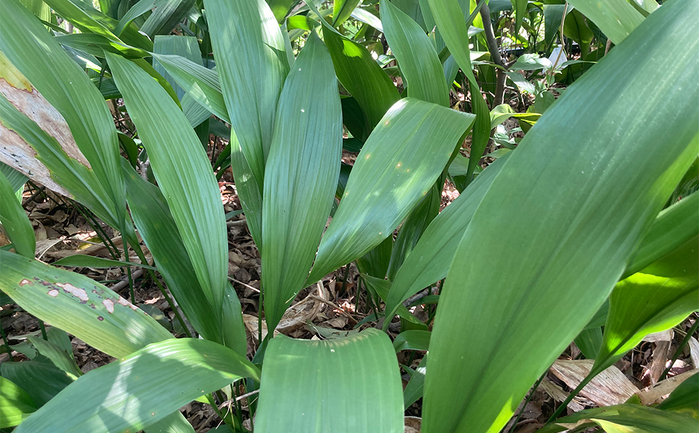 シンプルな色と形でお花を引き立てる、しなやかで丈夫な植物です。ハランの葉には殺菌作用があり、料理の盛り付けなどでも使われています。