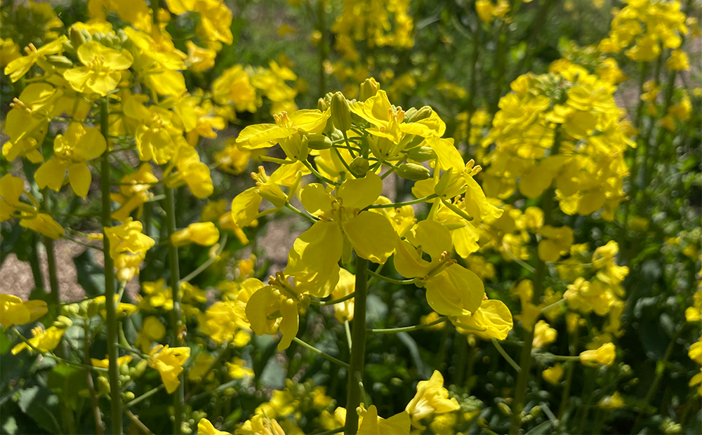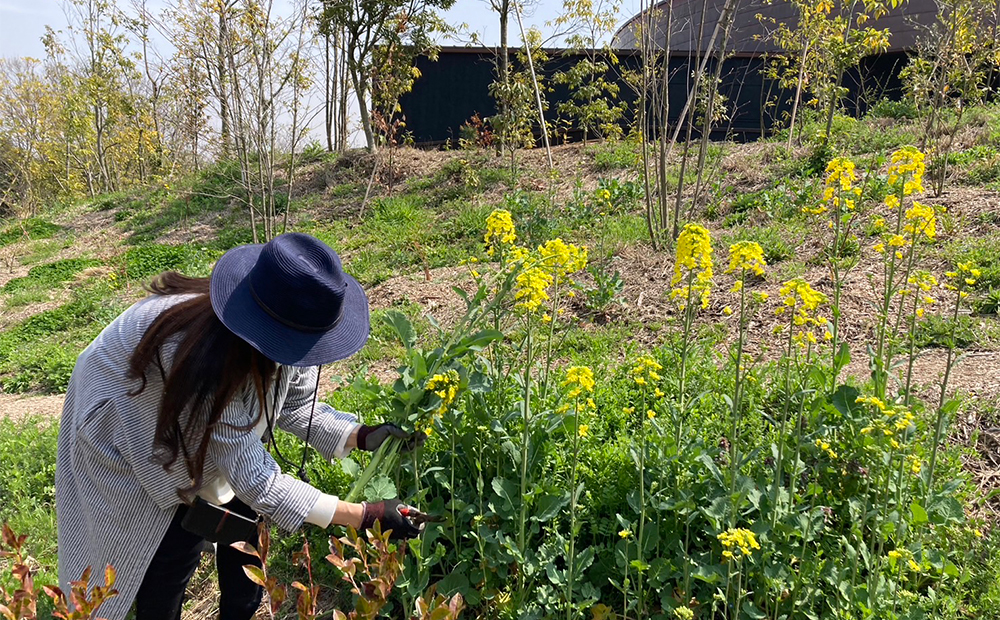鮮やかな黄色がパッと目につく十字型のお花です。菜の花は食用や菜種油として昔から私たちの生活とともにある身近な植物です。ラ コリーナ近江八幡の畑や店舗周辺でご覧いただくことができます。