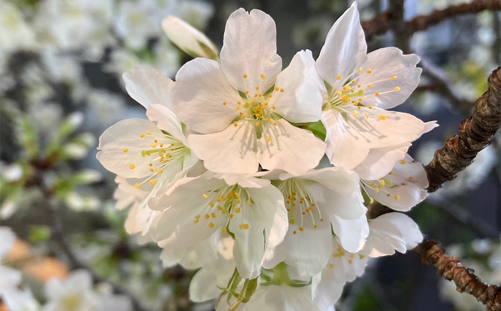 日本の固有種の桜です。花を楽しむと同時に、ピンクがかった新葉の美しさも楽しめるのが特徴です。