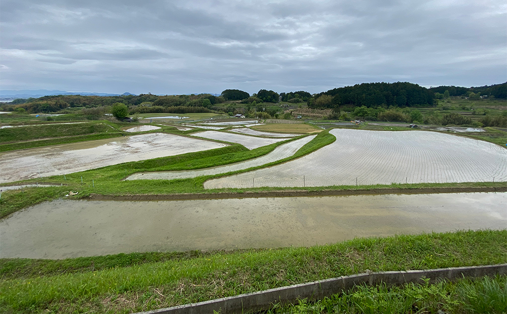この稲木は稲を干すだけでなく田んぼの脇に小さな木陰を作り、農家の方々はそこで休憩し、また虫たちが休める場としても大切な役割をします。農作業のあとに稲木の下で休む時間は贅沢な時間になりそうだな、と今から想像が膨らみます。